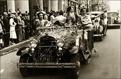 fantasiados, que jogavam confetes , serpentinas e lança-perfume nos